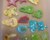 Am 25.11.25 und am 26.11.25 haben Eltern vom Elternbeirat und der Kita zusammen mit den Kindern am Vormittag in der Aula Salzteiganhänger ausgestochen und gestaltet.
